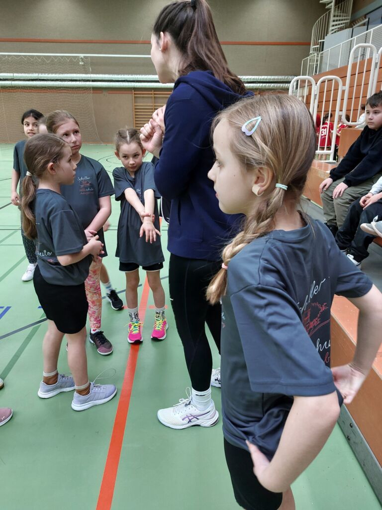 Zum 1. Mal fand ein Handballcup für Mädchen der 2./3. Klassen statt. Natürlich war auch die Schillerschule mit einer Mädchenmannschaft vertreten. Den Fahrdienst übernahmen dankenswerterweise einige Eltern. Aufgeregt kam die Mannschaft in Großwallstadt an der großen Turnhalle an. Nach dem Einspielen begann das Turnier. Im letzten Spiel traten die Mädchen gegen den Favoriten aus Großwallstadt an. Erfolgreich setzten sie sich zur Wehr und forderten die Großwallstädter Mannschaft heraus. Mit viel Einsatz, Überblick im Spiel und Teamgeist erreichte unsere Schulmannschaft nach der regulären Spielzeit ein Unentschieden. Das hatte so niemand erwartet. In der 5minütigen Verlängerung verlor die Schillerschule zwar, aber die Mannschaft war um eine sehr wichtige Erfahrung reicher: „Gemeinsam können wir mit Einsatz, Ausdauer und Mut“ viel erreichen. Der 3. Platz im Turnier war damit erreicht. Zufrieden und ziemlich ausgepowert ging es dann zur Schule zurück. Glückwunsch an die Mannschaft!